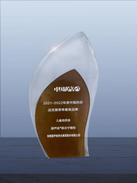 近日,由《中国药店》杂志社举办的“2022~2023年度中国药店发展报告暨中国药店价值榜发布会”在青岛举行,会上发布了“2021-2022年度中国药店店员推荐率最高品牌”奖,DB视讯药业两大明星产品DB视讯牌小儿肺热咳喘颗粒(4g)、DB视讯牌肠炎宁颗粒(2g)双双上榜。